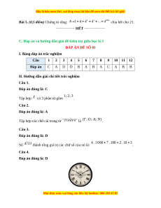 C. Đáp án và hướng dẫn giải đề kiểm tra giữa học kì I ĐÁP ÁN ĐỀ SỐ 01