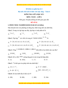 KIỂM TRA GIỮA HỌC KÌ I MÔN: TOÁN – LỚP 6