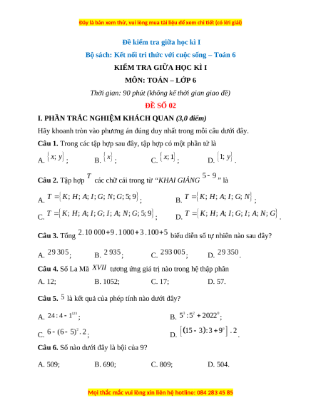 Đề thi giữa kì 1 Toán 6 Kết nối tri thức (Đề 2)