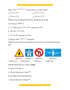 Câu 9. Trong các biển báo giao thông sau, biển báo nào có hình dạng là tam giác đều? Biển báo 1 Biển báo 2 Biển báo 3 Biển báo 4 A. Biển báo 3; B. Biển báo 4; C. Biển báo 1; D. Biển báo 2.