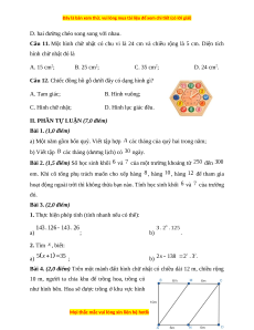 Bài 4. (2,0 điểm) Trên một mảnh đấtt hình chữ nhật có chiều dài 12 m, chiều rộng