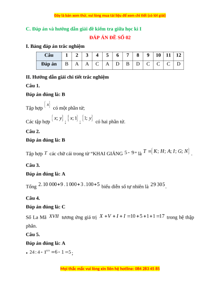 biểu diễn số tự nhiên nào sau đây? A. ; B. ; C. ; D. . Câu 4. Số La Mã