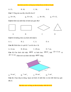 Câu 9. Số đường chéo của hình chữ nhật là A. 1; B. 2; C. 3; D. 4.