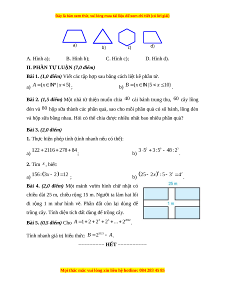 Bài 1. (1,0 điểm) Viết các tập hợp sau bằng cách liệt kê phần tử. a) ; b) .