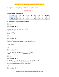 I. Bảng đáp án trắc nghiệm Câu 1 2 3 4 5 6 7 8 9 10 11 12 Đáp án B C D A C A A D B B C C