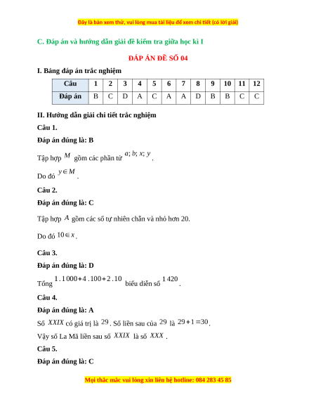 C. Đáp án và hướng dẫn giải đề kiểm tra giữa học kì I ĐÁP ÁN ĐỀ SỐ 04
