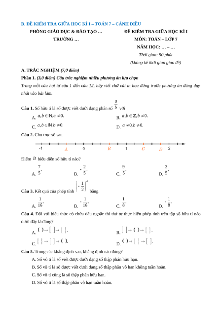 B. ĐỀ KIỂM TRA GIỮA HỌC KÌ I – TOÁN 7 – CÁNH DIỀU