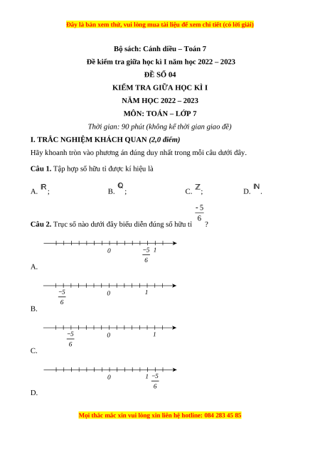Đề kiểm tra giữa học kì I năm học 2022 – 2023 ĐỀ SỐ 04