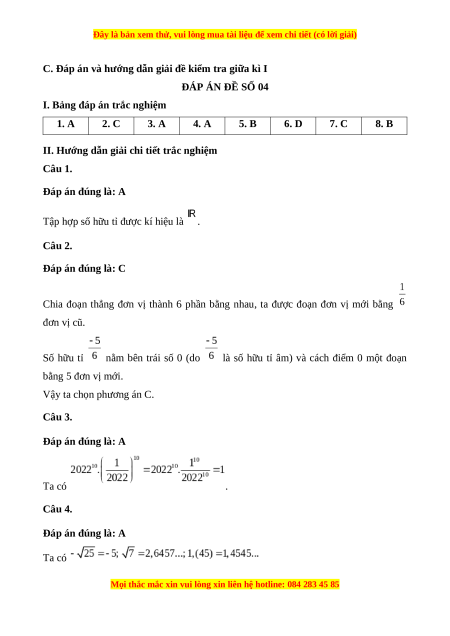 Câu 2. Trục số nào dưới đây biểu diễn đúng số hữu tỉ ? 0 5 1 6 A. 5 0 1 6 B. 5 0 1 6 C. 0 1 5 6 D.