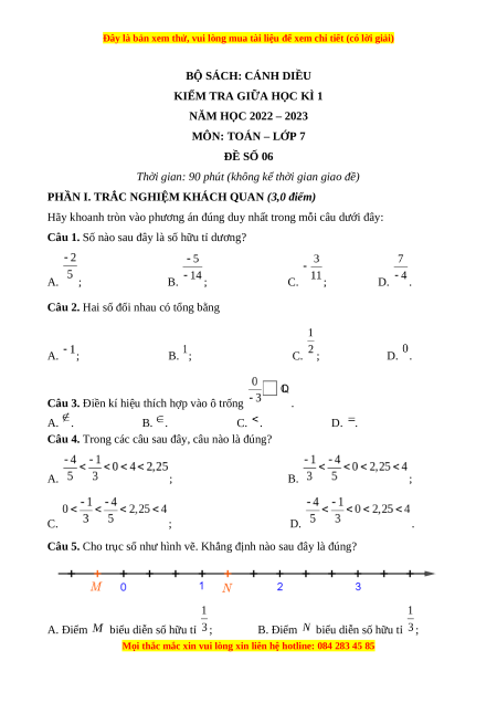 NĂM HỌC 2022 – 2023 MÔN: TOÁN – LỚP 7 ĐỀ SỐ 06