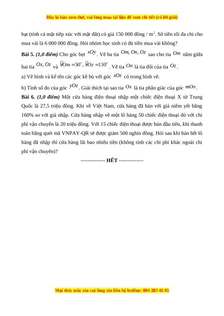 Bài 6. (1,0 điểm) Một cửa hàng điện thoại nhập một chiếc điện thoại X từ Trung