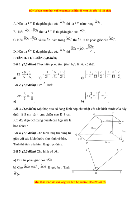PHẦN II. TỰ LUẬN (7,0 điểm)