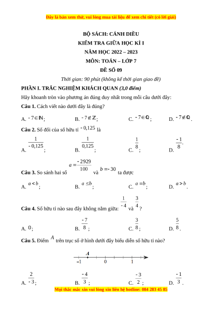 NĂM HỌC 2022 – 2023 MÔN: TOÁN – LỚP 7 ĐỀ SỐ 09