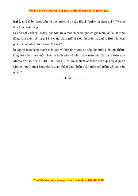 Bài 6. (1,0 điểm) Một siêu thị điện máy, vào ngày Black Friday đã giảm giá cho tất cả các mặt hàng.