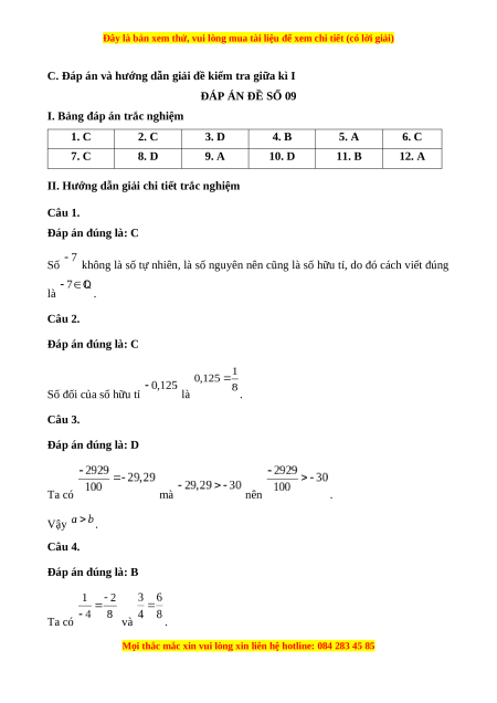 Câu 2. Số đối của số hữu tỉ là A. ; B. ; C. ; D.