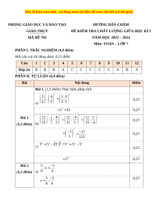 Đề thi giữa kì 1 Toán 7 Cánh diều Phòng GD&ĐT Giao Thuỷ – Nam Định