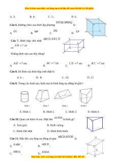 Câu 8. Số đỉnh của hình hộp chữ nhật là A. 6 ; B. 8; C. 10; D. 12