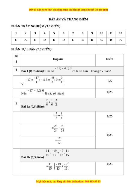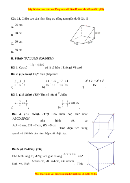 II. PHẦN TỰ LUẬN (7,0 ĐIỂM) Bài 1. Các số