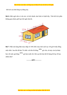 Bài 6: Một ngôi nhà có cấu trúc và kích thước như hình vẽ dưới đây. Tính thể tích phần
