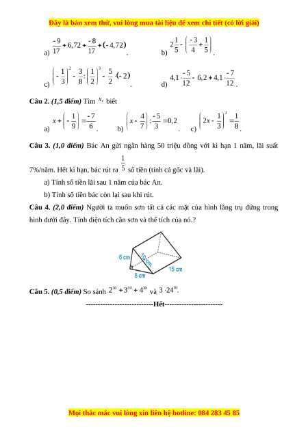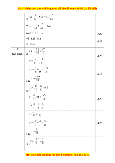 Câu 2. (1,5 điểm) Tìm biết a) . b) . c) .