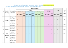 Chủ đề/ Nội dung/ đơn Tự luận TT Nhiều lựa chọn “Đúng – Sai” Trả lời ngắn % Chương vị kiến thức Vận Vận Vận Vận Vận điểm Biết Hiểu Biết Hiểu Biết Hiểu Biết Hiểu Biết Hiểu dụng dụng dụng dụng dụng Tập hợp các số hữu tỉ. Thứ tự 2 2 0 0 5% Số hữu trong tập hợp 1 tỉ số hữu tỉ Các phép tính 2 2 2 1 1 2 2 4 4 35% với số hữu tỉ Số vô tỉ. Căn bậc hai số học. 2 Số thực 2 1 1 3 0 1 15% Tập hợp các ℝ số thực. 3 Hình Hình hộp chữ 4 2 2 1 1 6 3 1 35%