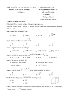 B. ĐỀ THI KIỂM TRA GIỮA HỌC KÌ I – TOÁN 7 – CHÂN TRỜI SÁNG TẠO