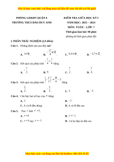 Đề thi giữa kì 1 Toán 7 Chân trời sáng tạo Trường THCS Đào Duy Anh – TP HCM