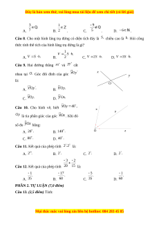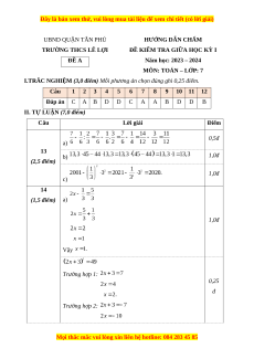 II. TỰ LUẬN (7,0 điểm) Câu Lời giải Điểm 0,5đ a) 13 b) 1,0đ (2,5 điểm) 1,0đ c) 14 (1,5 điểm) a) 1,0đ Vậy Trường hợp 1: 0,25 đ Trường hợp 2:
