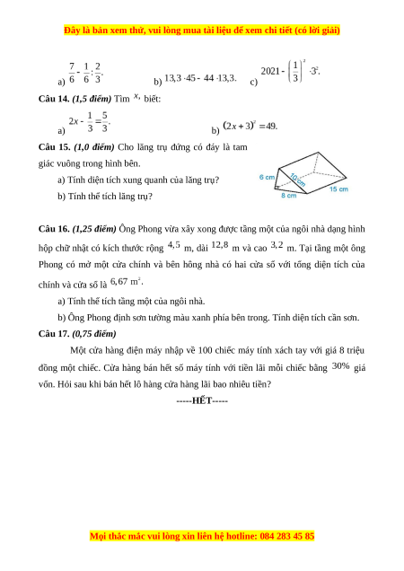 Câu 14. (1,5 điểm) Tìm biết: a) b)