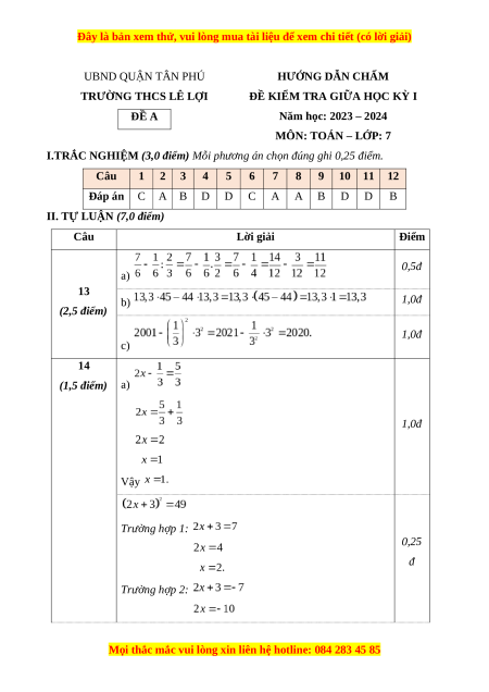 UBND QUẬN TÂN PHÚ HƯỚNG DẪN CHẤM
