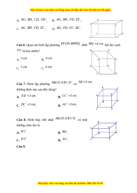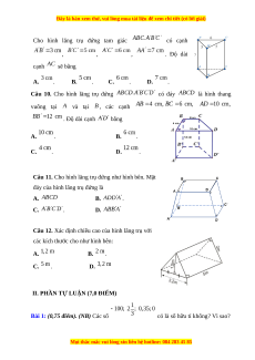 Câu 8. Hình hộp chữ nhật có một B C đường chéo tên là D A A. . B. . B' C' C. . D. . A' D' Câu 9.