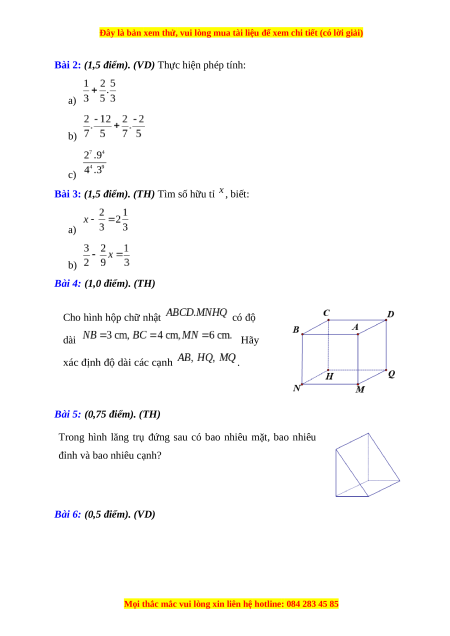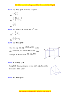 Bài 4: (1,0 điểm). (TH) Cho hình hộp chữ nhật có độ dài Hãy
