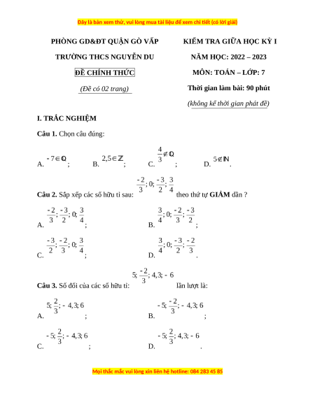 MÔN: TOÁN – LỚP: 7 (Đề có 02 trang)