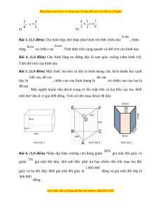 Bài 3. (1,5 điểm) Cho hình hộp chữ nhật (như hình vẽ) biết chiều dài , chiều rộng và chiều cao