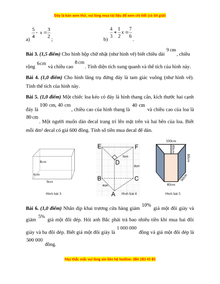 Bài 6. (1,0 điểm) Nhân dịp khai trương cửa hàng giảm giá một đôi giày và giảm