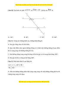 Câu 10. Cho hình vẽ, biết và . Số đo của là A. 130°; B. 40°; C. 50°; D. 140°.
