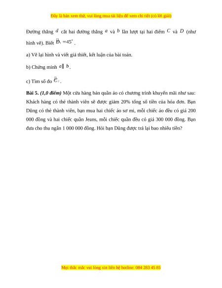 Đây là bản xem thử, vui lòng mua tài liệu để xem chi tiết (có lời giải)