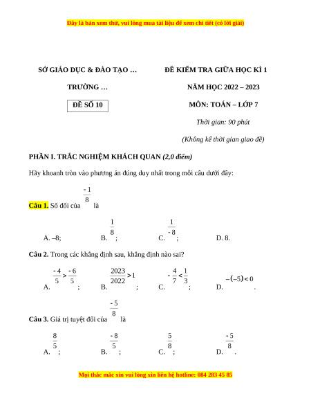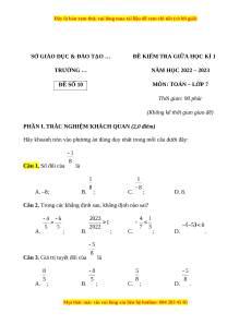 NĂM HỌC 2022 – 2023 ĐỀ SỐ 10 MÔN: TOÁN – LỚP 7 Thời gian: 90 phút