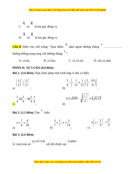 Chúng tôi đảm bảo đủ số lượng đề đã cam kết hoặc có thể nhiều hơn, tất cả có BẢN WORD, LỜI GIẢI CHI TIẾT và tải về dễ dàng.