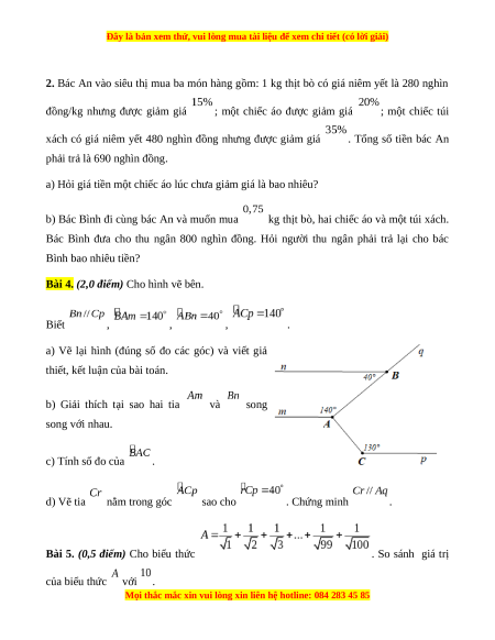 2. Bác An vào siêu thị mua ba món hàng gồm: 1 kg thịt bò có giá niêm yết là 280 nghìn