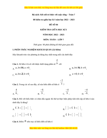 Đề kiểm tra giữa học kì I năm học 2022 – 2023 ĐỀ SỐ 04
