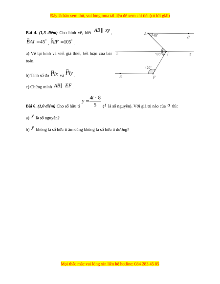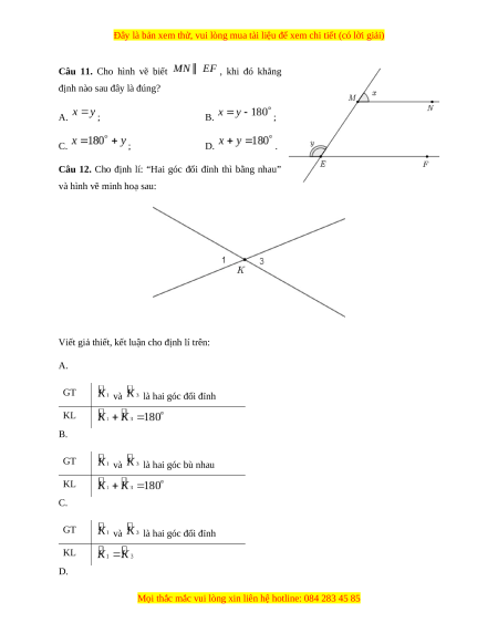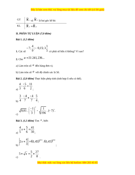 Đây là bản xem thử, vui lòng mua tài liệu để xem chi tiết (có lời giải) GT và là hai góc kề bù KL