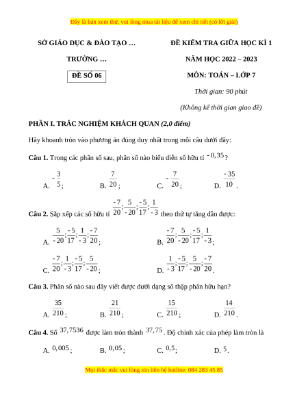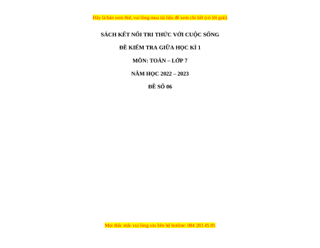 NĂM HỌC 2022 – 2023 ĐỀ SỐ 06 MÔN: TOÁN – LỚP 7 Thời gian: 90 phút