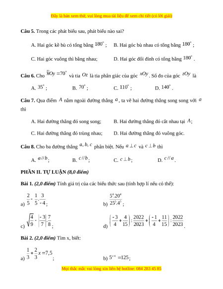 Đây là bản xem thử, vui lòng mua tài liệu để xem chi tiết (có lời giải)