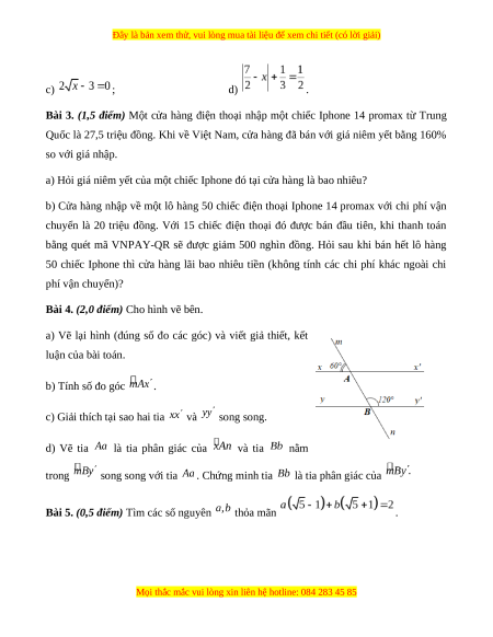 Đây là bản xem thử, vui lòng mua tài liệu để xem chi tiết (có lời giải) c) ; d) .