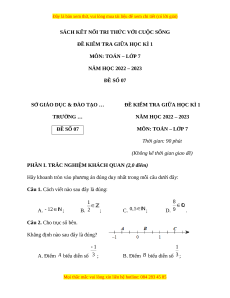 NĂM HỌC 2022 – 2023 ĐỀ SỐ 07 MÔN: TOÁN – LỚP 7 Thời gian: 90 phút