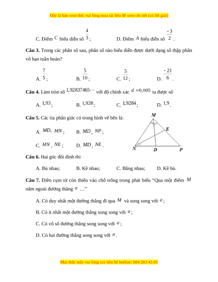 Đây là bản xem thử, vui lòng mua tài liệu để xem chi tiết (có lời giải)