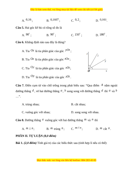 Đây là bản xem thử, vui lòng mua tài liệu để xem chi tiết (có lời giải)