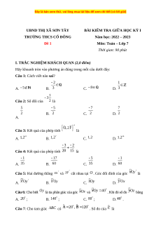 Năm học: 2022 – 2023 Đề 1 Môn: Toán – Lớp 7 Thời gian: 90 phút