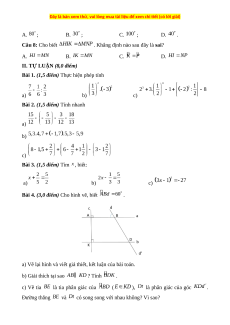 là tia phân giác của góc và . Khi đó số đo bằng A. ; B. ; C. ; D. . Câu 7: Cho tam giác có . Số đo của là